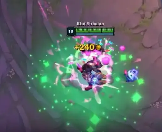 · 双重焰火:造成技能伤害时,发射1枚(根据暴击率额外+1-3枚)爆竹,每枚造成10-30(+15%基础攻击力)(+10%法术强度)的魔法伤害。此外,永久获得15%暴击率。